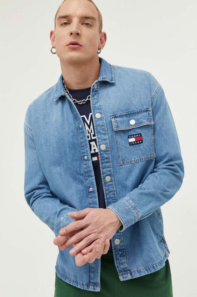 Джинсова сорочка Tommy Jeans чоловіча relaxed класичний комір колір блакитний (3293917)