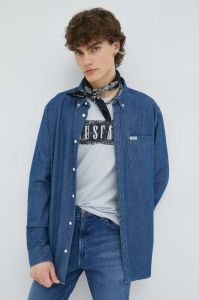 Джинсова сорочка Wrangler чоловіча колір синій regular класичний комір