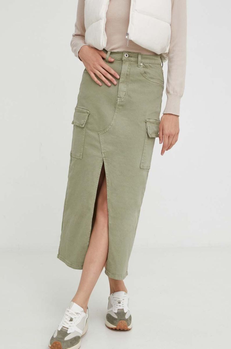 Джинсова спідниця Answear Lab колір зелений midi пряма
