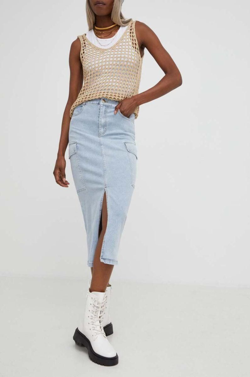 Джинсова спідниця Answear Lab midi пряма колір блакитний (3304468)