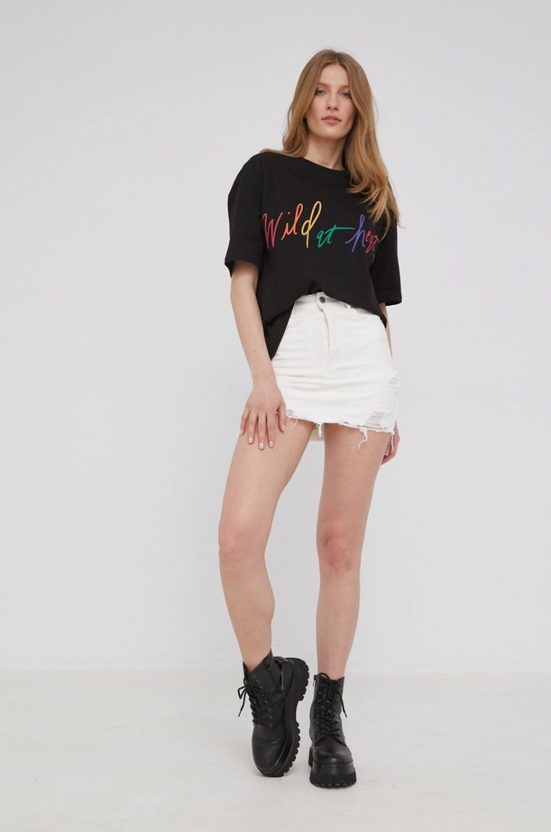 Джинсова спідниця Answear Lab X Лімітована колекція BE BRAVE колір білий mini пряма