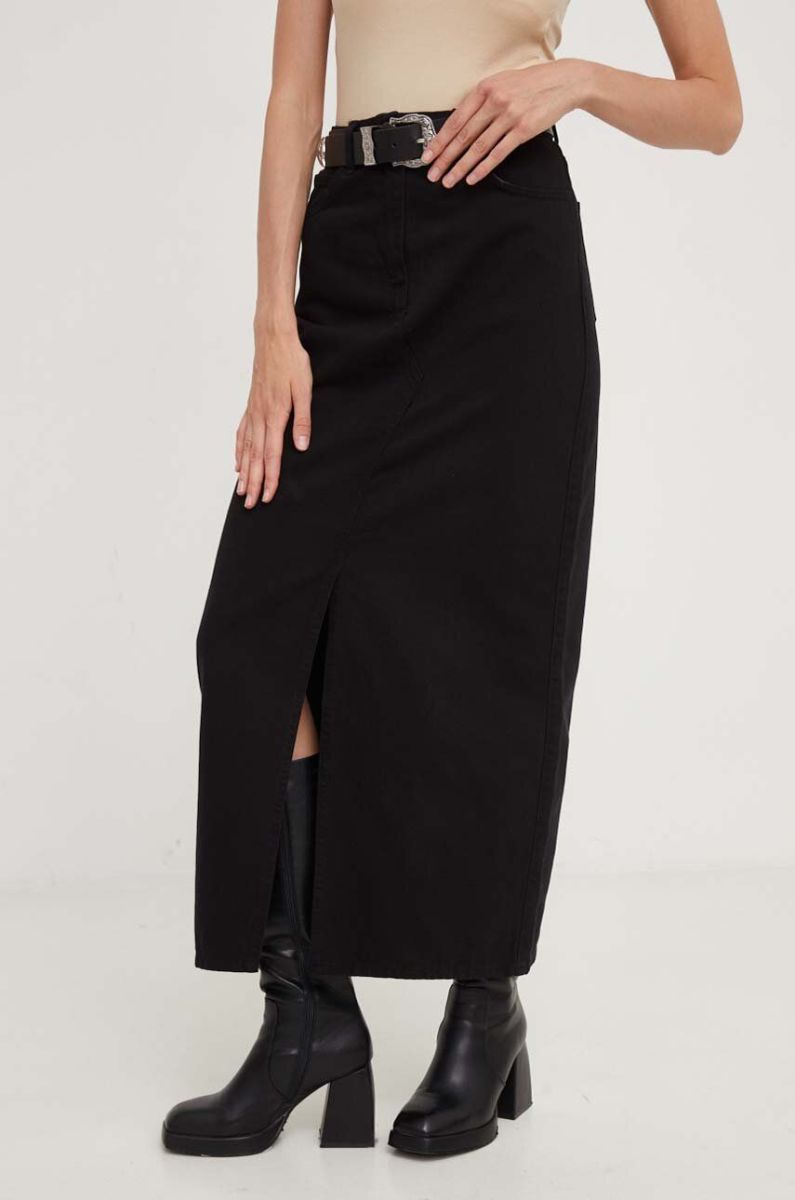 Джинсова спідниця Answear Lab X Лімітована колекція NO SHAME колір чорний midi пряма