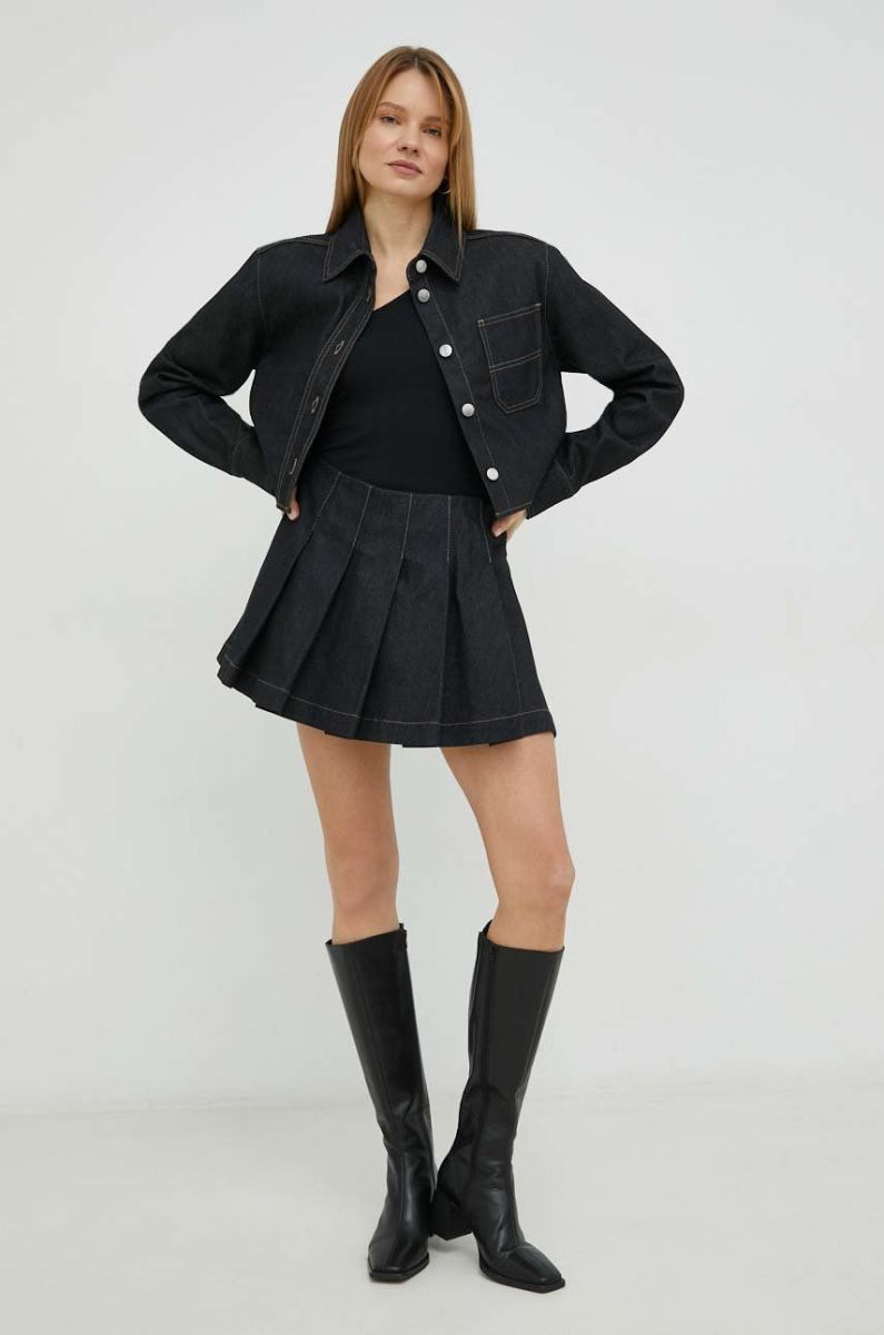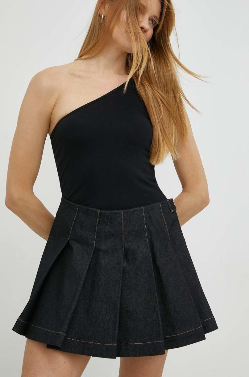 Джинсова спідниця Remain колір чорний mini розкльошена