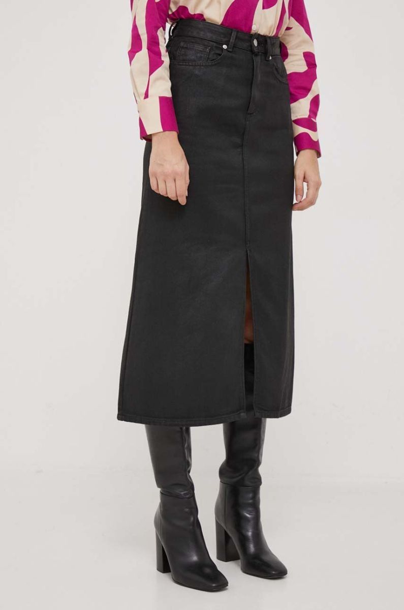 Джинсова спідниця Tommy Hilfiger колір чорний midi пряма