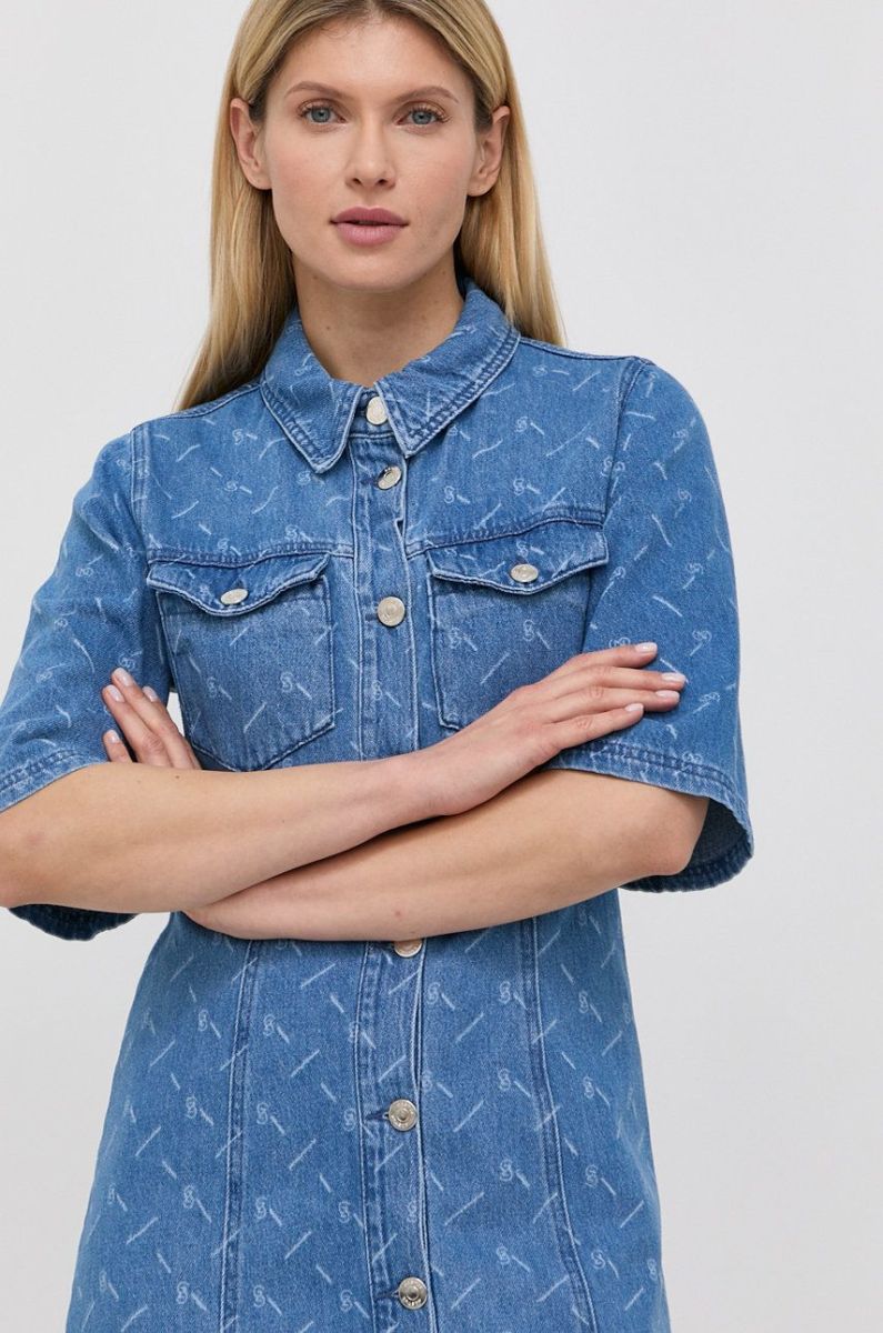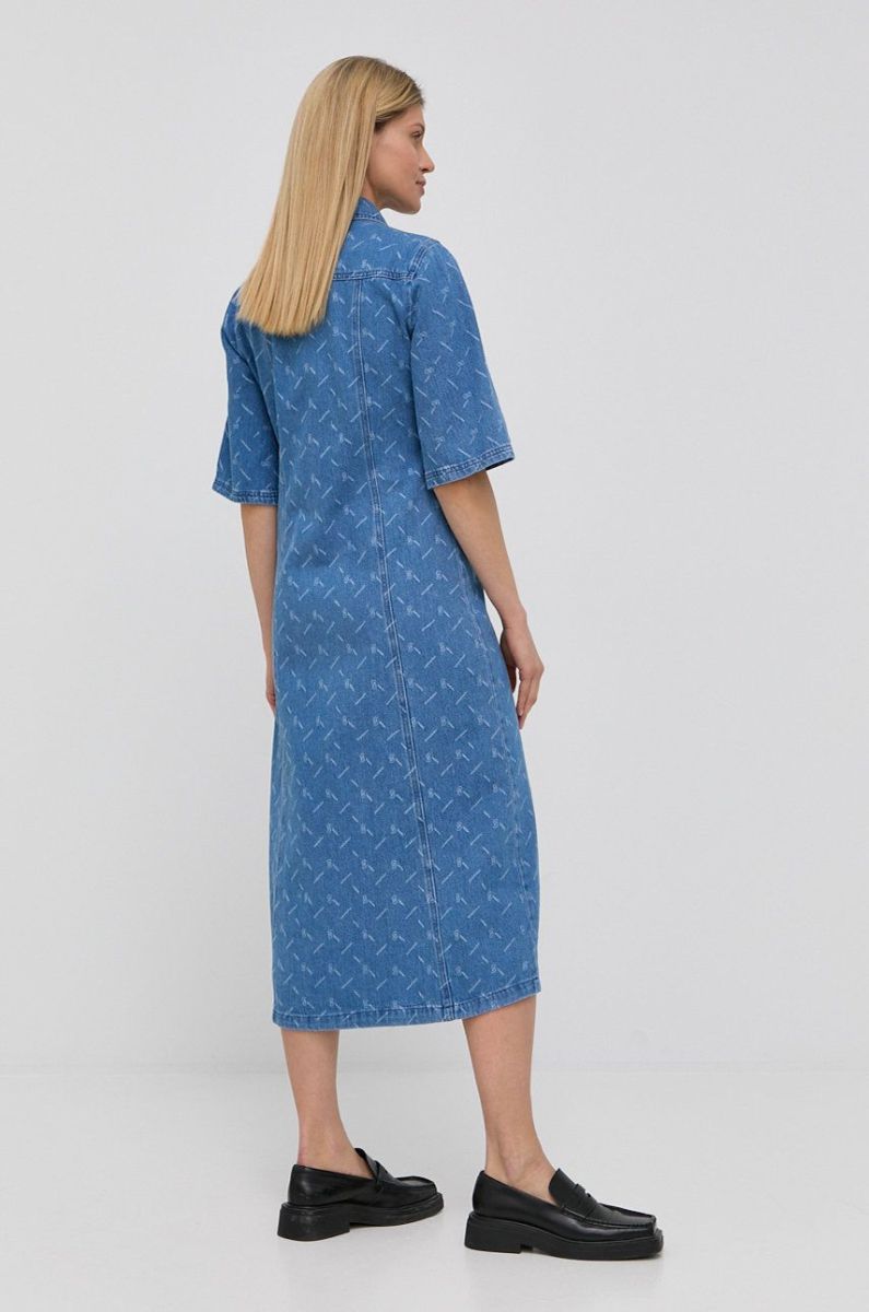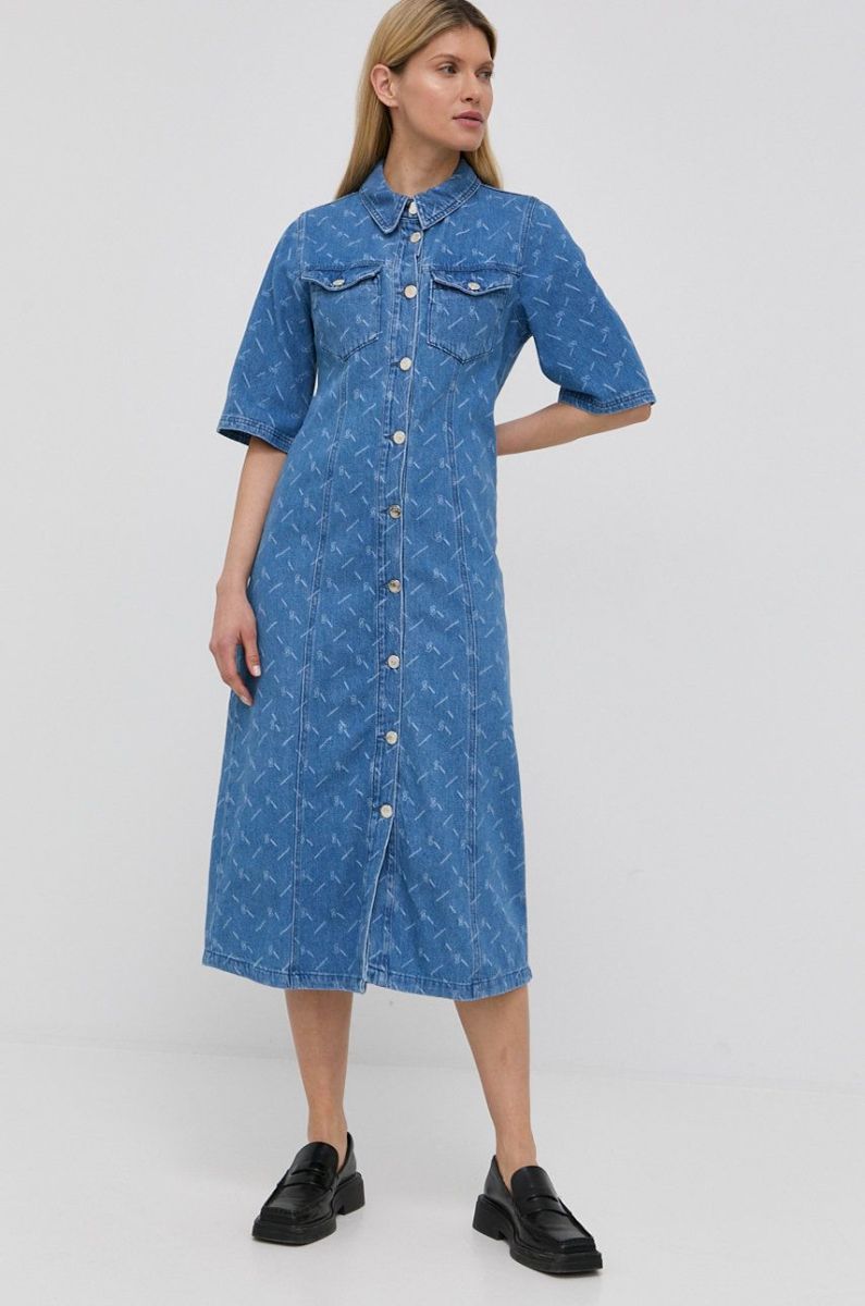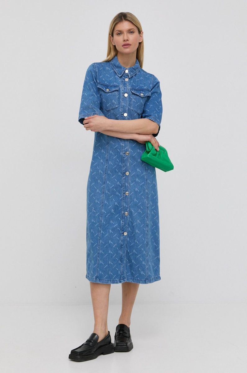 Джинсова сукня Gestuz midi розкльошена колір блакитний