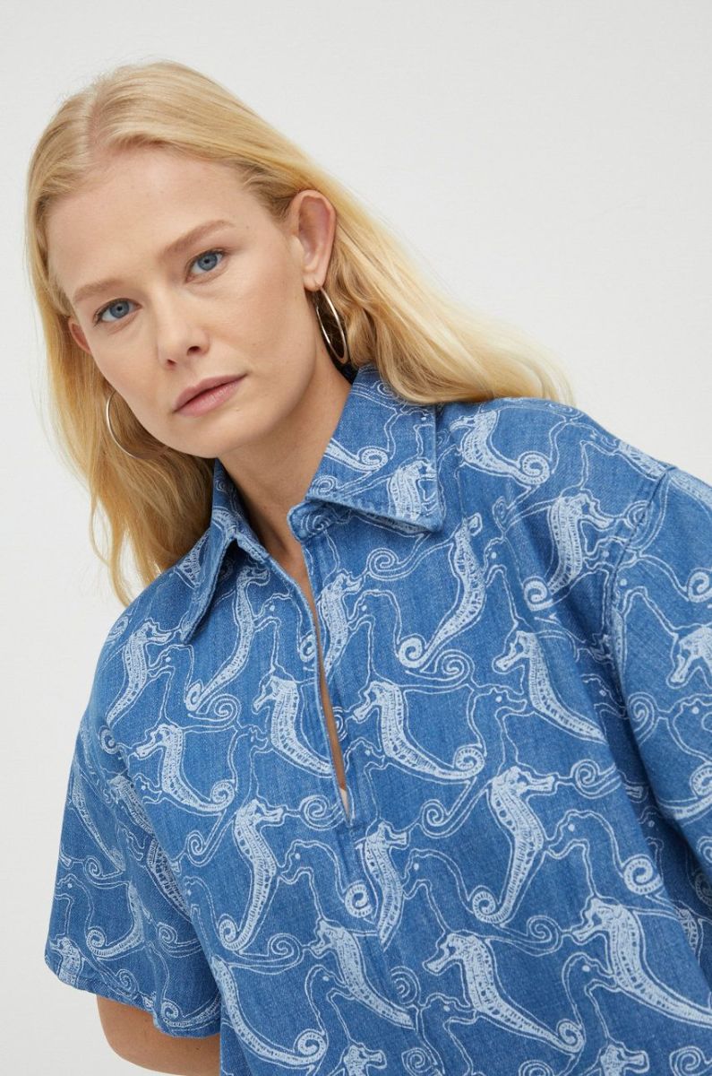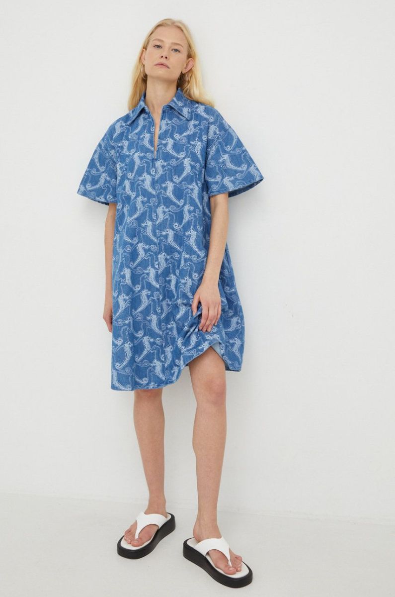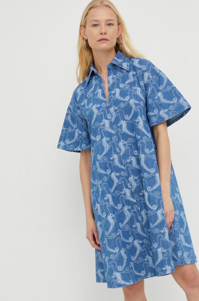 Джинсова сукня Samsoe Samsoe mini розкльошена колір блакитний