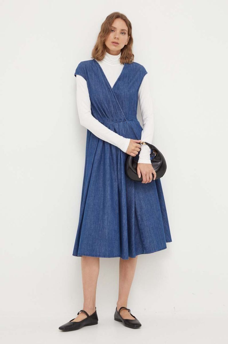 Джинсова сукня Weekend Max Mara колір синій midi розкльошена