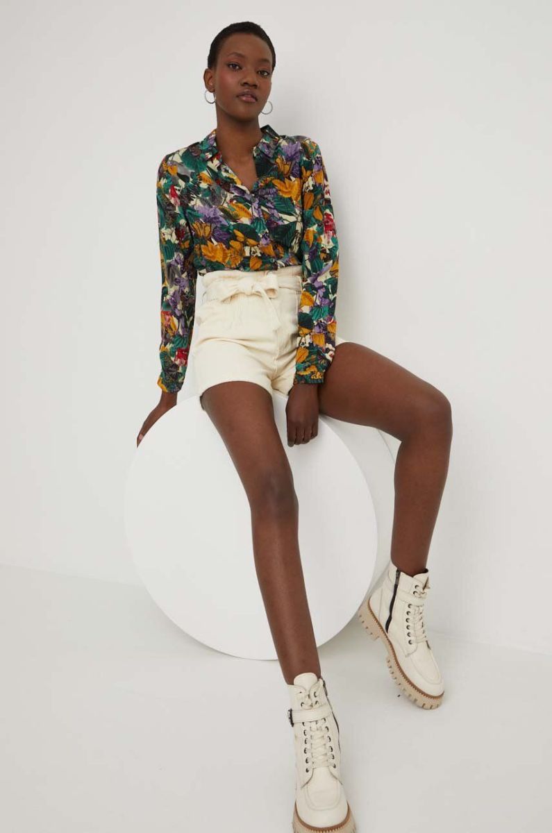 Джинсові шорти Answear Lab жіночі колір бежевий однотонні висока посадка (3168141)