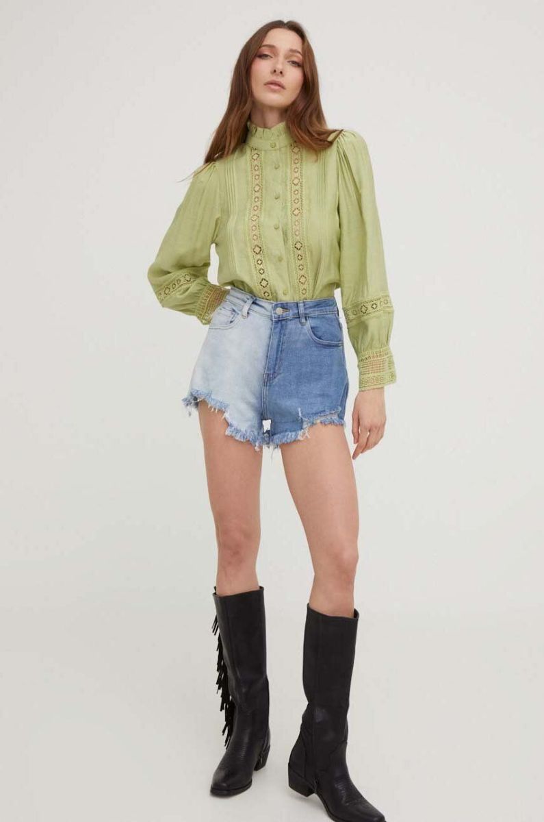Джинсові шорти Answear Lab жіночі візерунок висока посадка колір блакитний (3251931)