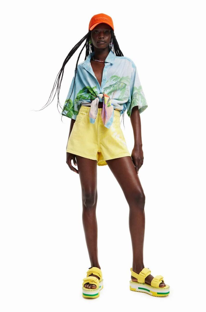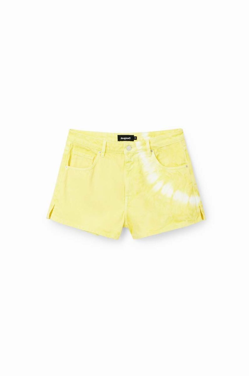 Джинсові шорти Desigual жіночі колір жовтий з принтом висока посадка