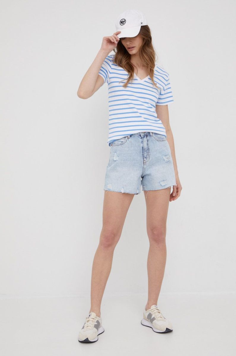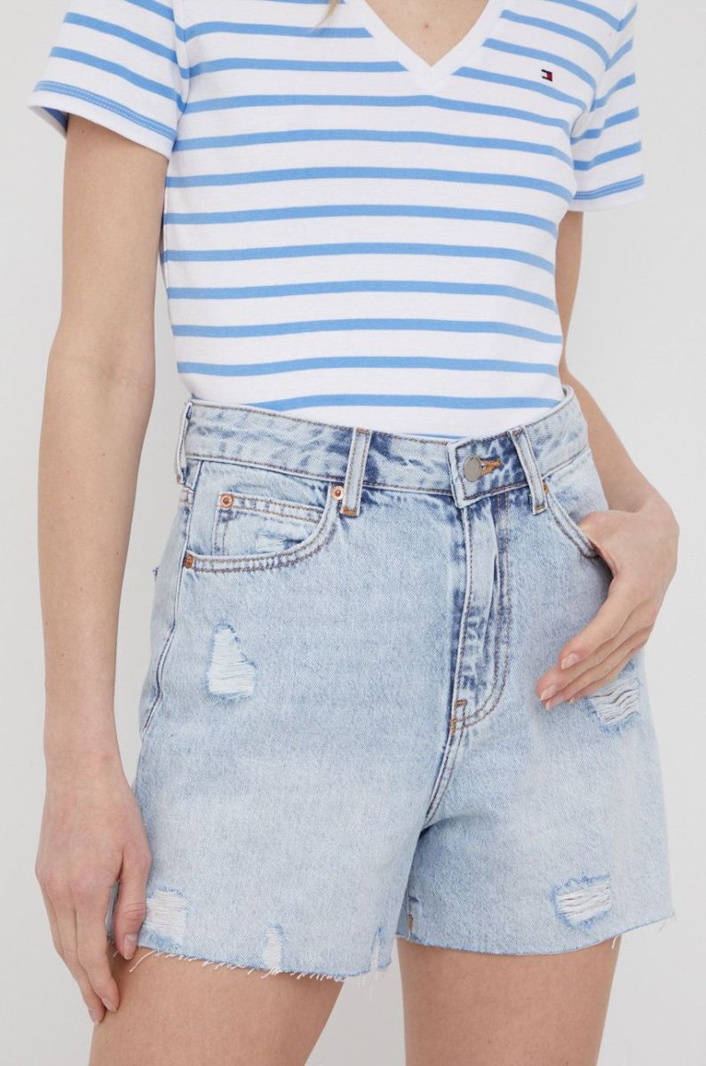 Джинсові шорти Dr. Denim жіночі однотонні висока посадка колір блакитний (2334141)