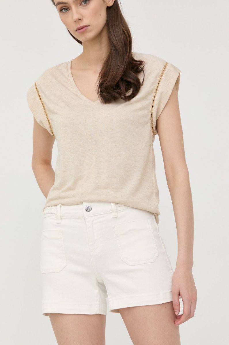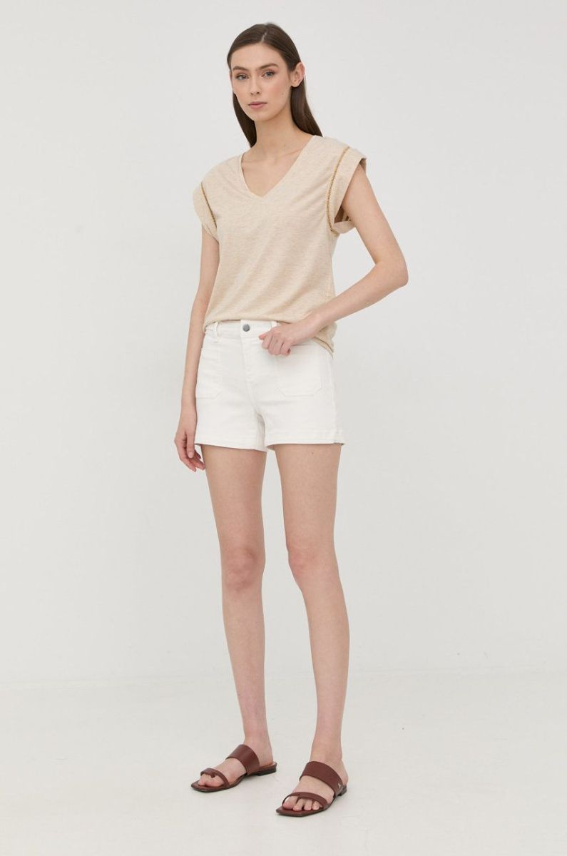 Джинсові шорти Morgan жіночі колір білий однотонні середня посадка