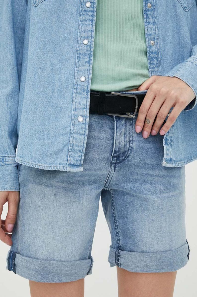 Джинсові шорти Mustang жіночі однотонні середня посадка колір блакитний (3300485)