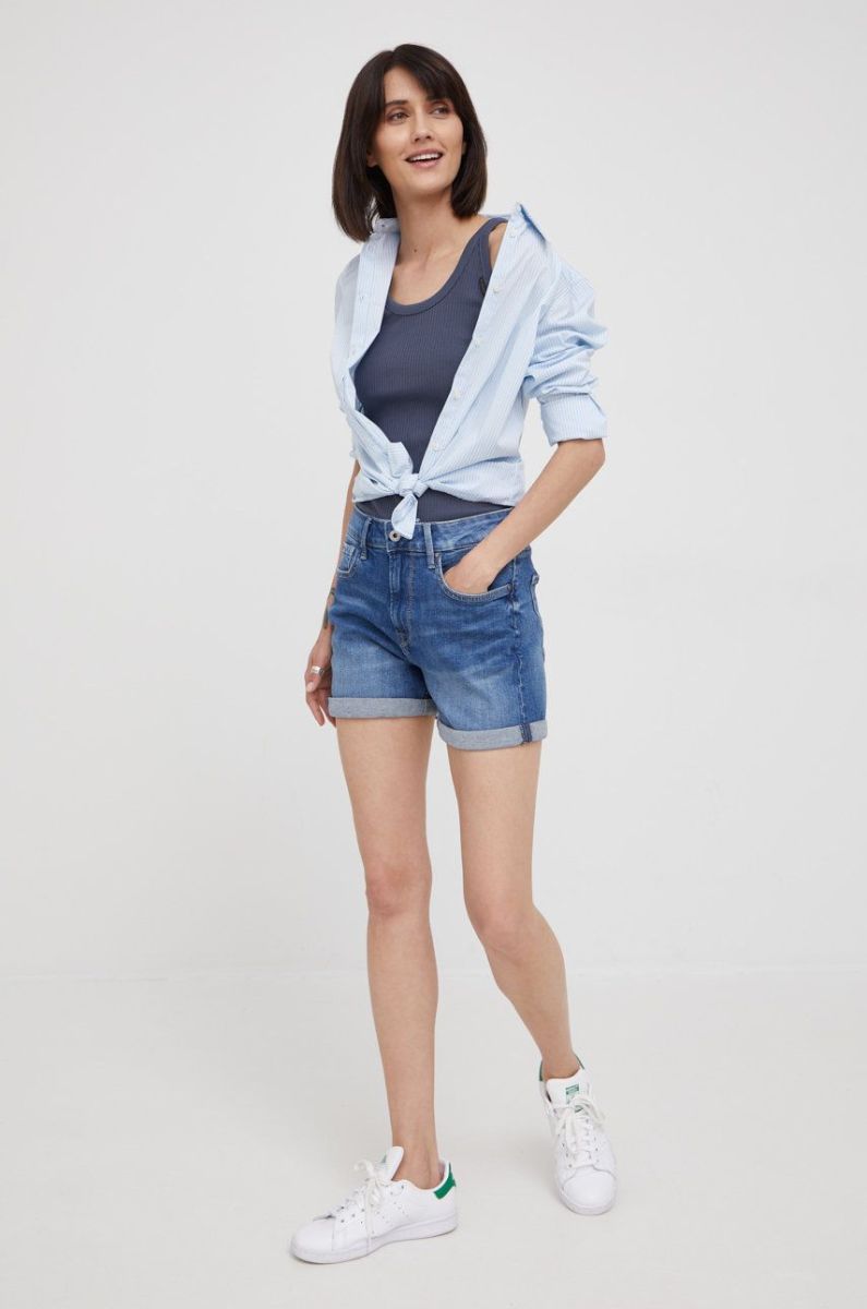 Джинсові шорти Pepe Jeans Mary Short жіночі колір синій однотонні висока посадка