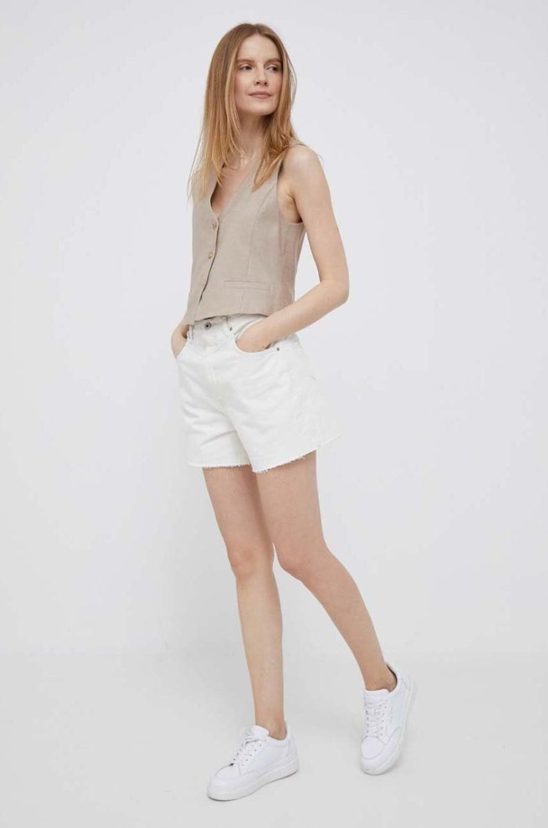Джинсові шорти Pepe Jeans Rachel жіночі колір бежевий однотонні висока посадка