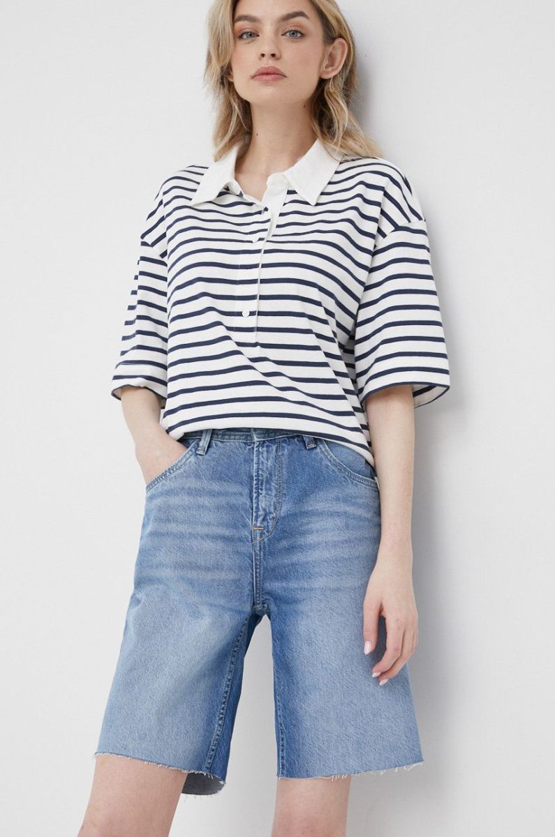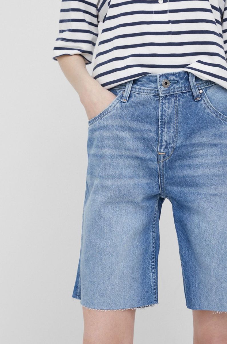 Джинсові шорти Pepe Jeans Violet Bermuda жіночі однотонні висока посадка колір блакитний