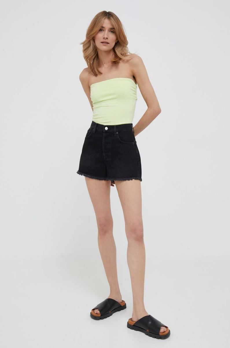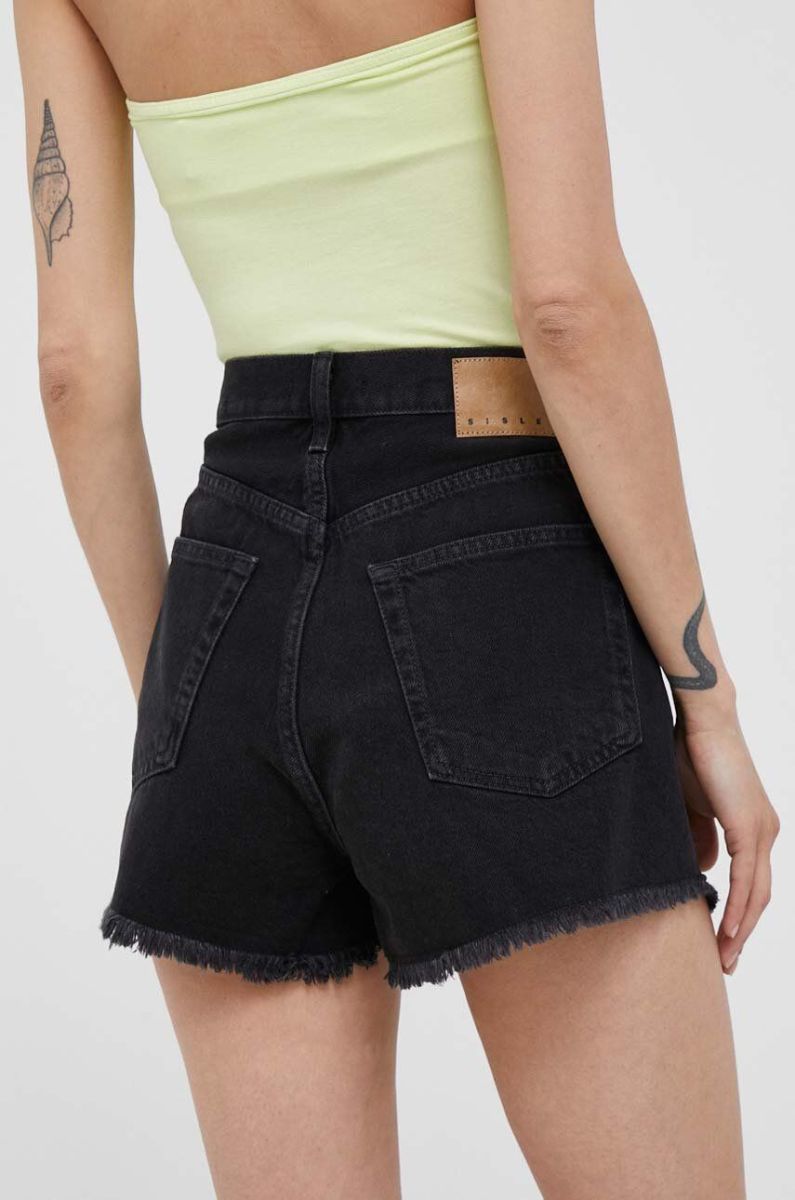 Джинсові шорти Sisley жіночі колір чорний однотонні висока посадка (3307034)