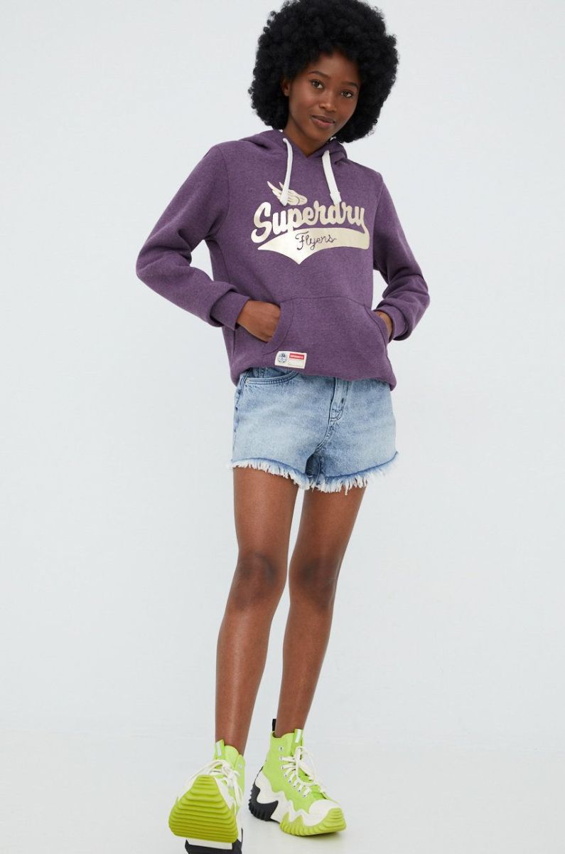 Джинсові шорти Superdry жіночі висока посадка колір блакитний