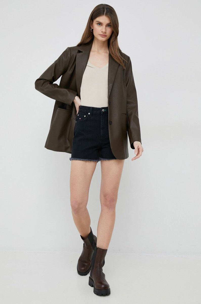 Джинсові шорти Tommy Hilfiger x Shawn Mendes жіночі колір чорний однотонні висока посадка