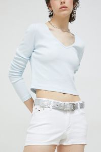 Джинсові шорти Tommy Jeans жіночі колір білий однотонні середня посадка