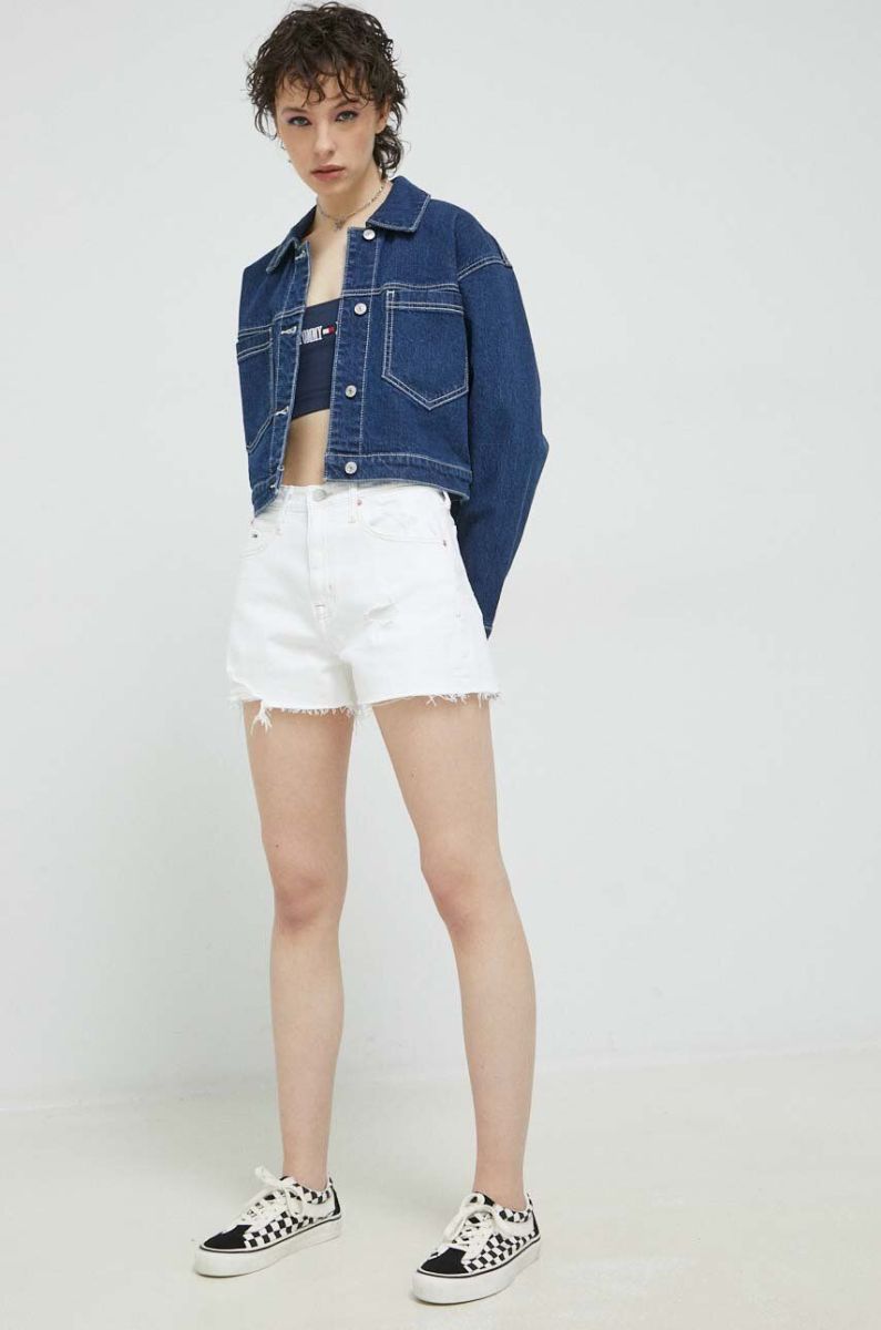 Джинсові шорти Tommy Jeans жіночі колір білий однотонні висока посадка (3071752)