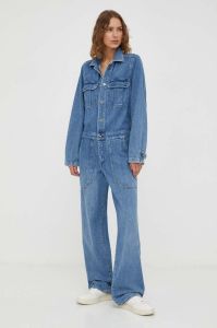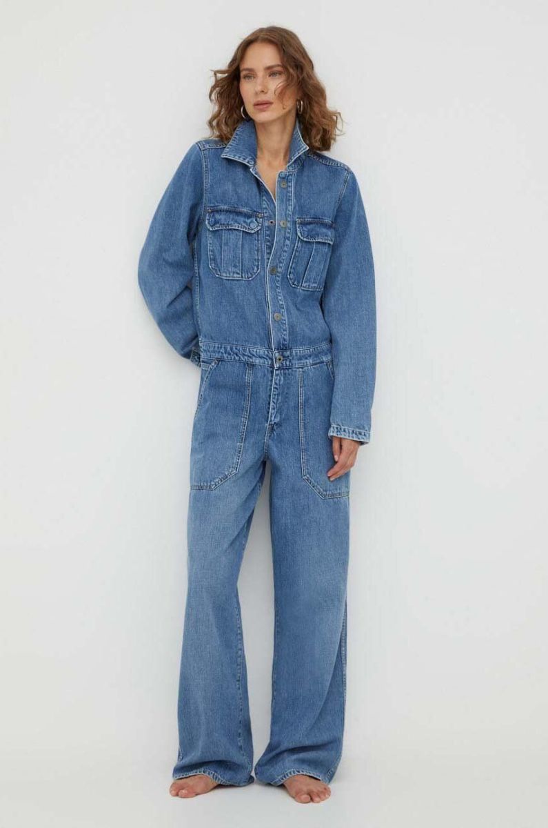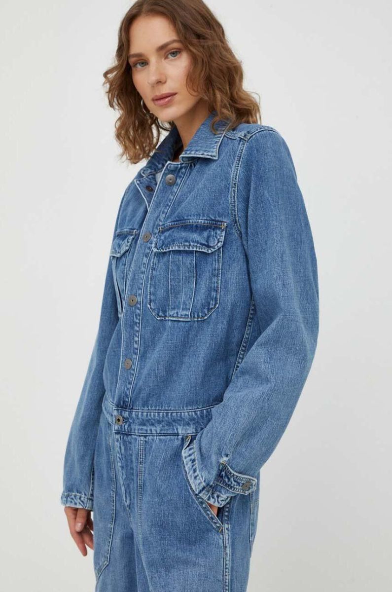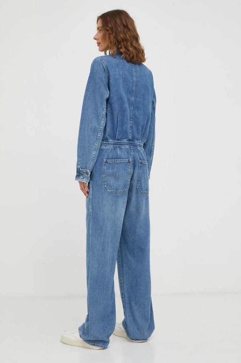 Джинсовий комбінезон G-Star Raw з бавовни з коміром колір блакитний