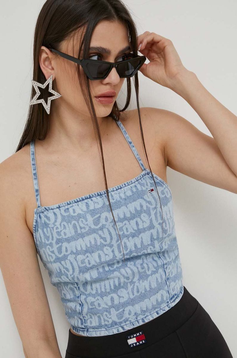 Джинсовий топ Tommy Jeans оголена спина колір блакитний