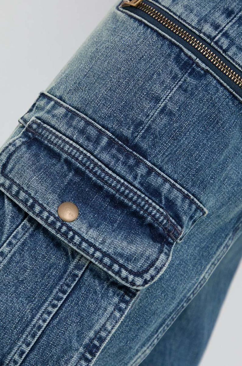 - Модель із заниженою талією та застібкою на ґудзики і блискавку.