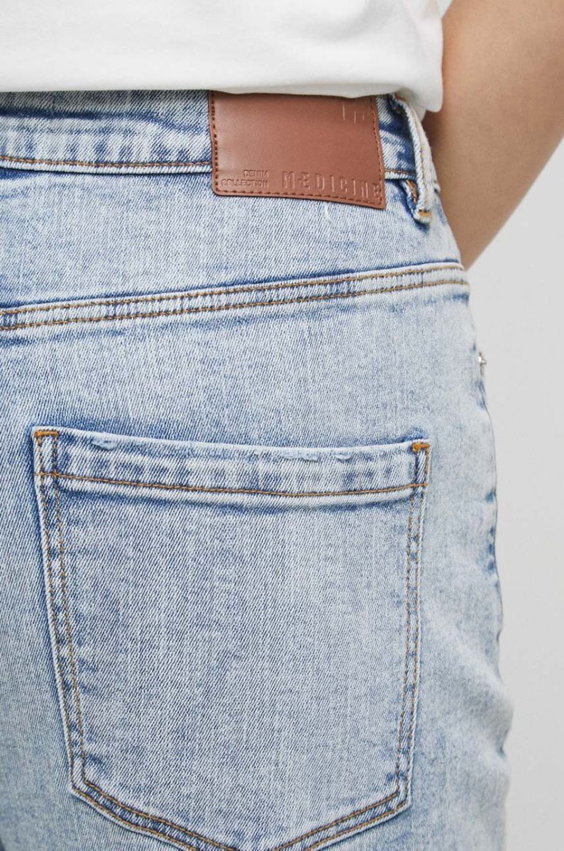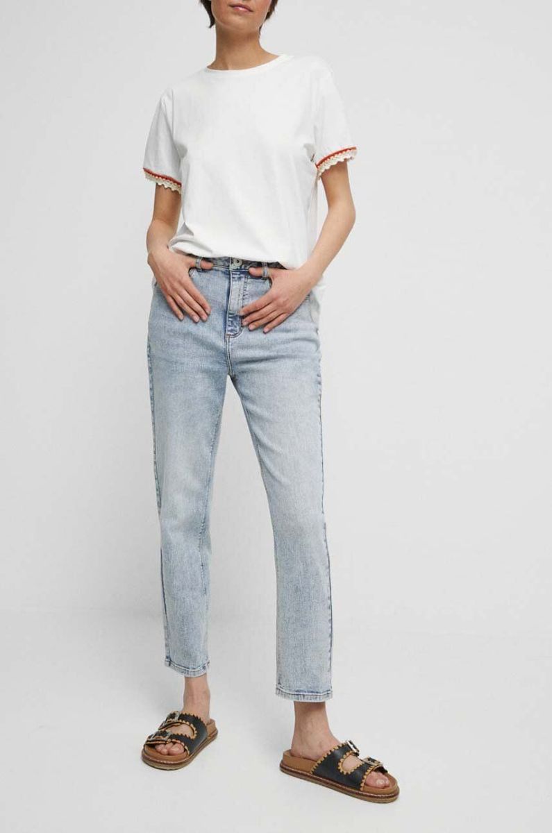 - Фасон mom fit - джинси у вінтажному стилі з вільним кроєм, особливо в зоні стегон, і делікатно завуженими штанинами. Крій mom fit візуально звужує талію та підкреслює стегна, залишаючись при цьому зручними у носінні.