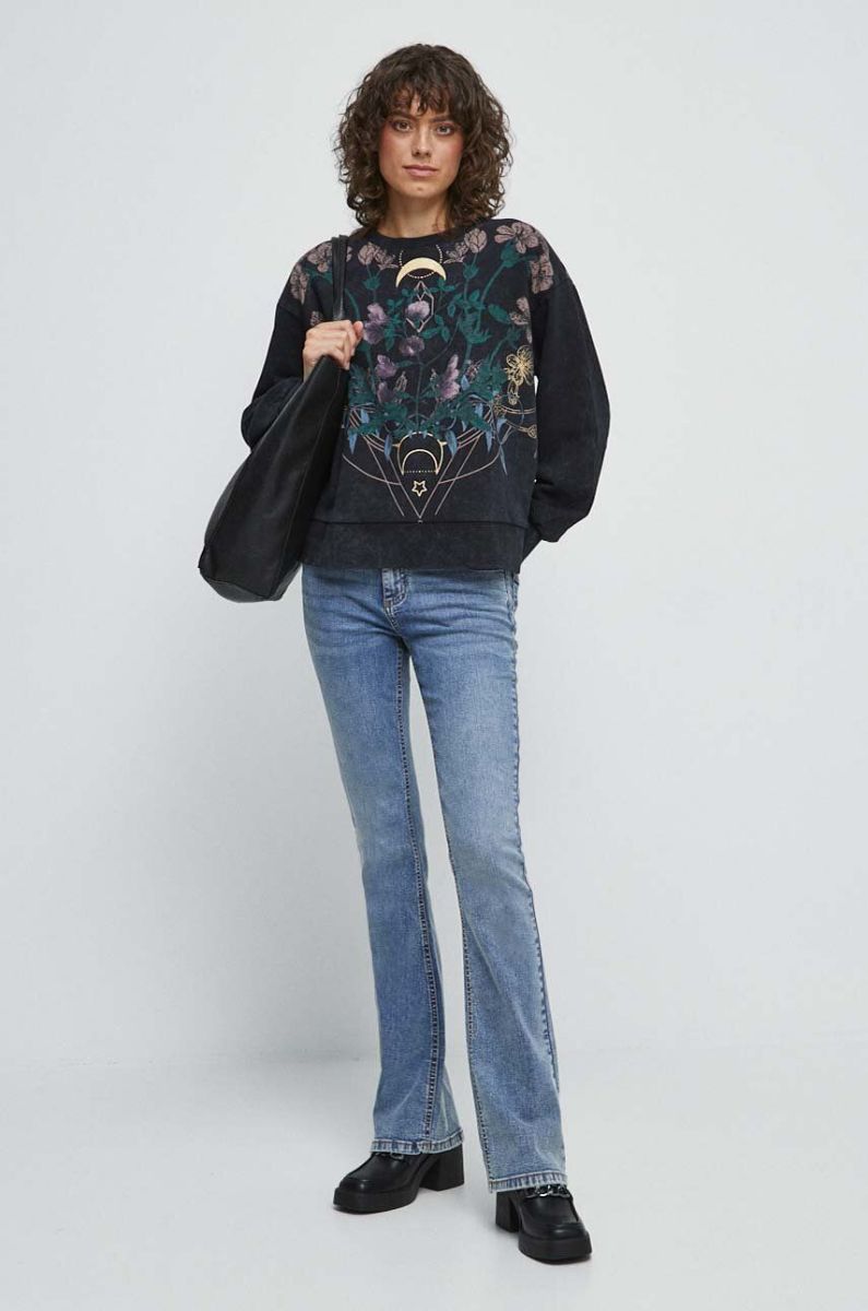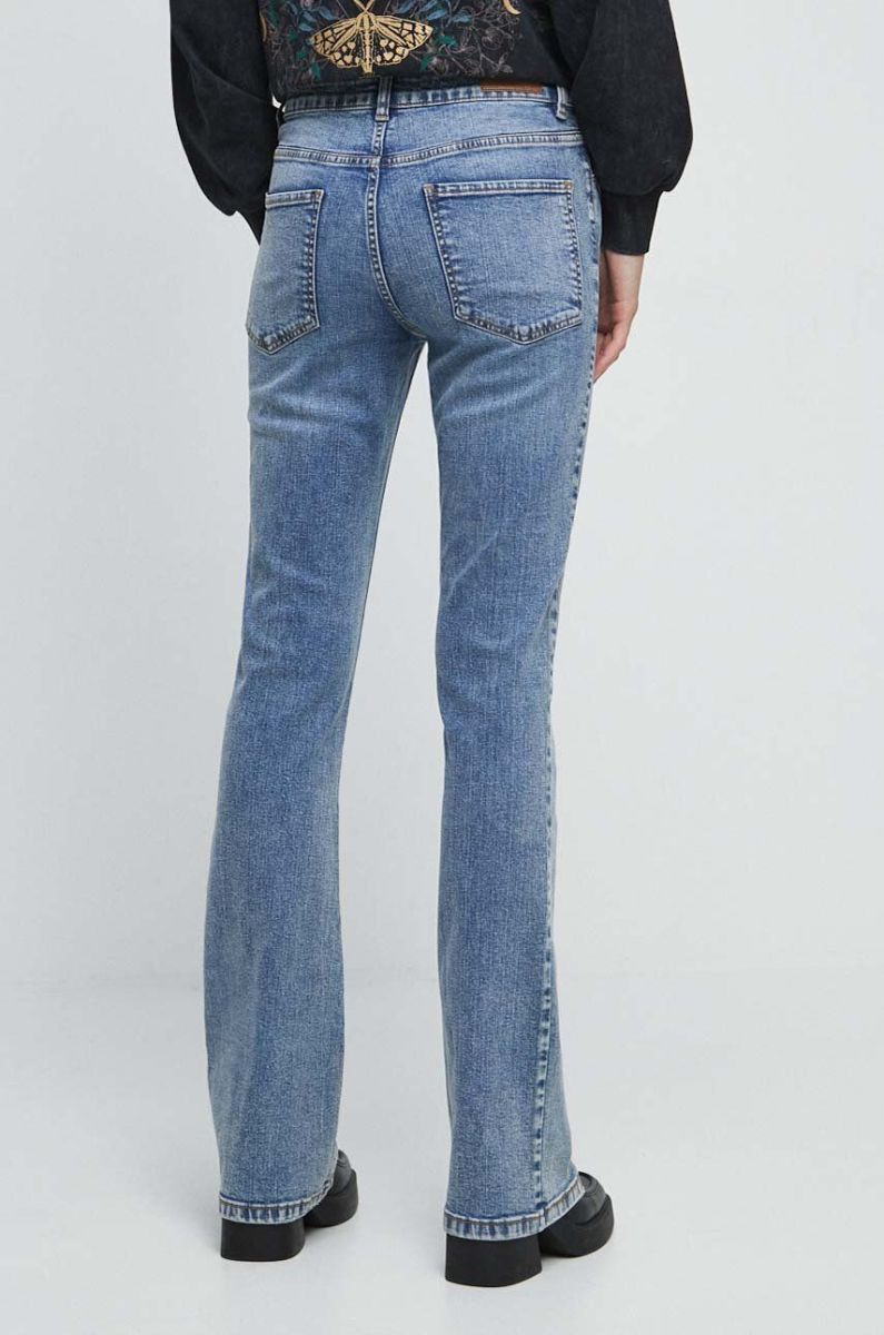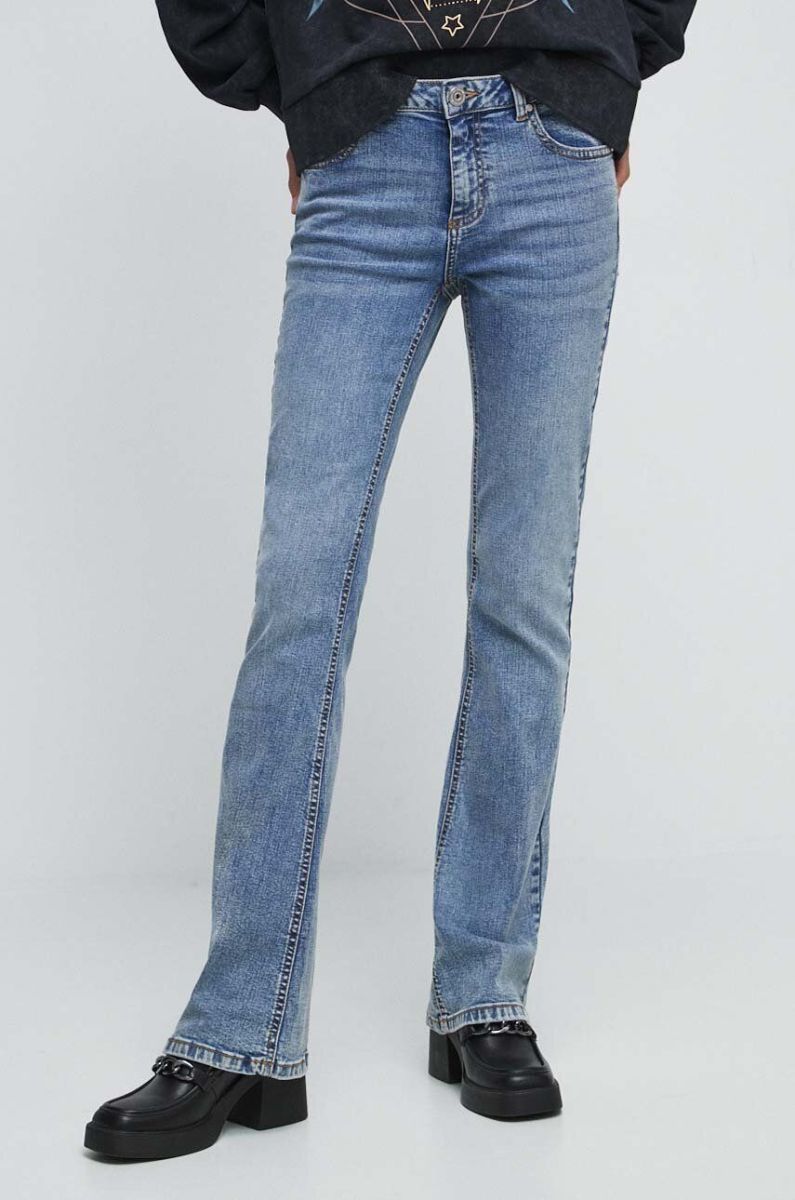 - Фасон flare - джинси, що облягають в зоні талії та стегон. Відрізняються характерною штаниною, яка плавно розширюється від області коліна. Такий крій створює ефект пісочного годинника та збалансовує пропорції силуету.