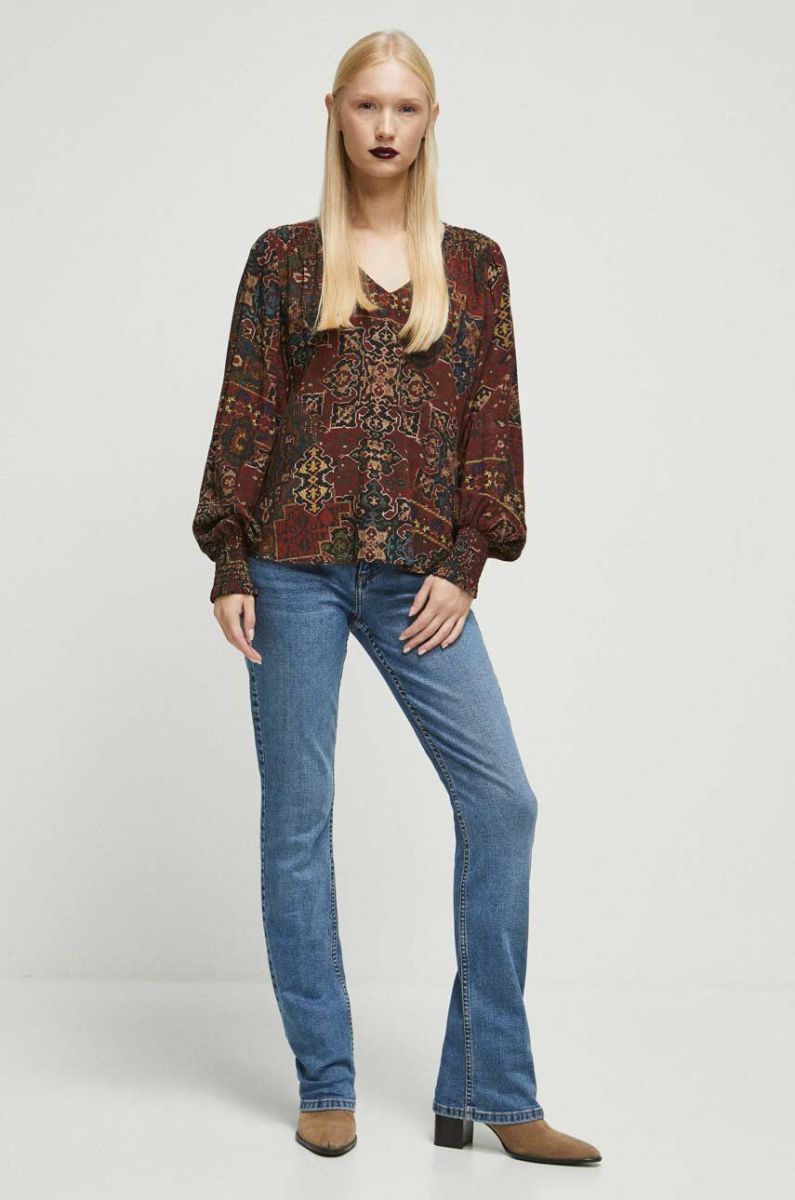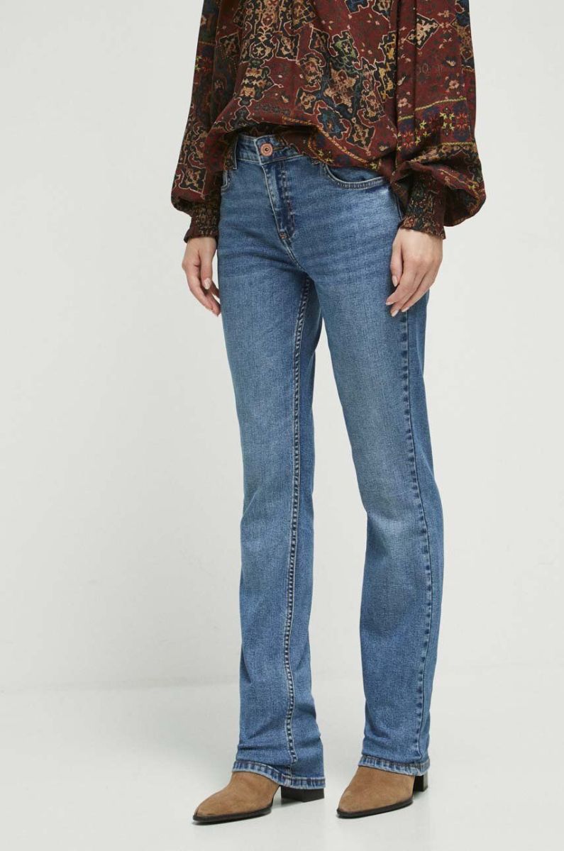 - Фасон flare - джинси, що облягають в зоні талії та стегон. Відрізняються характерною штаниною, яка плавно розширюється від області коліна. Такий крій створює ефект пісочного годинника та збалансовує пропорції силуету.