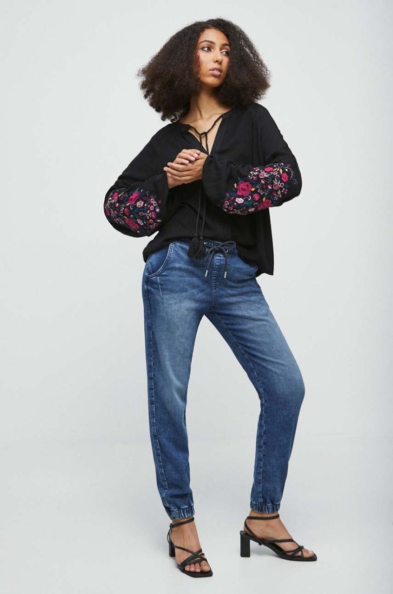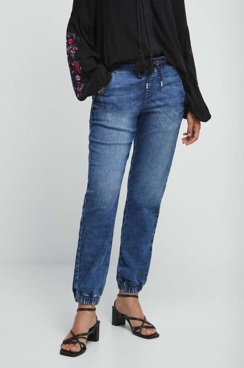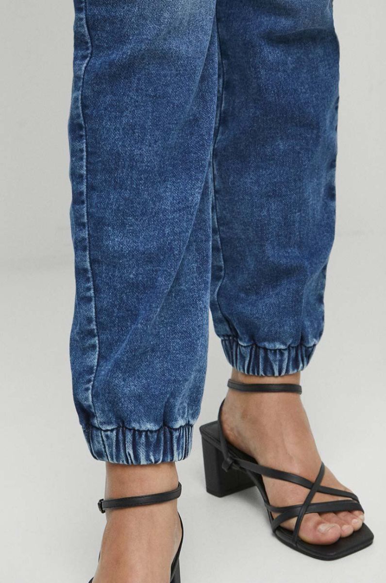 - Фасон jogger - джинси вирізняються тим, що штанина закінчується резинкою, а більш вільна форма надає їм характеру вуличної моди. Крій запозичили у спортивних штанів - вони універсальні та зручні в носінні, а також підходять для всіх типів фігури.