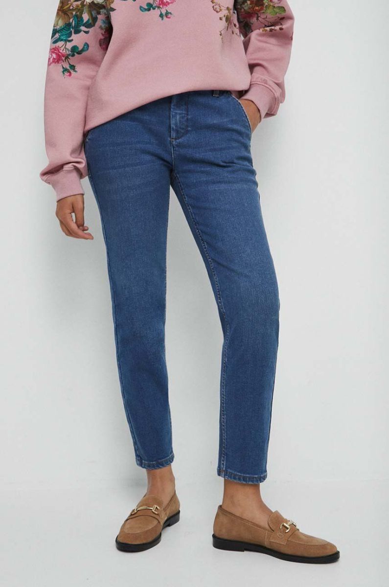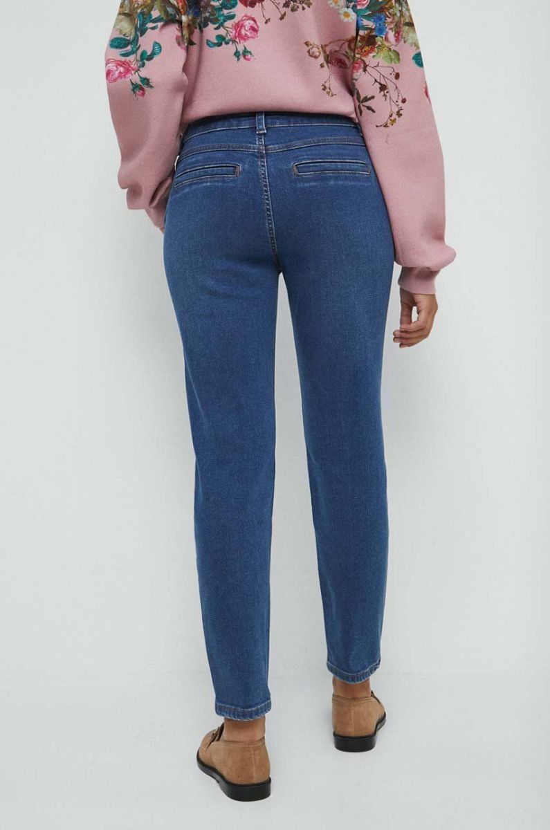 - Фасон chino - джинси, для яких характерні косі кишені та пряма штанина, дещо завужена до низу. Як правило, у них є передні і задні кишені, що надає їм невимушеного, але практичного вигляду. Вони більш вільні в зоні стегон, та підходять для людей з високим і нижчим зростом. Якщо правильно підібрати джинси, вони допоможуть скорегувати пропорції тіла.