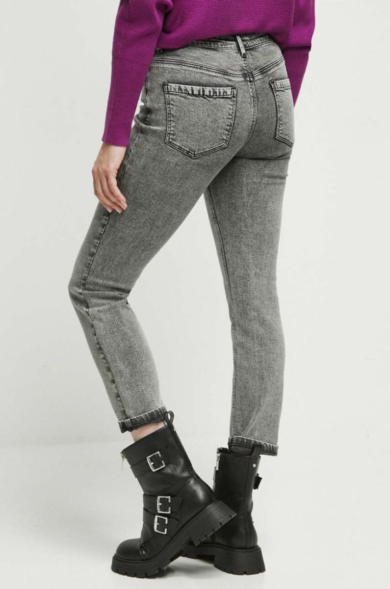 - Фасон skinny - джинси з повною довжиною і сильно завуженими штанинами, що створюють ефект "другої шкіри". Джинси прилягають до тіла, підкреслюючи лінію талії і силует, а еластична тканина підвищує комфорт під час носіння.