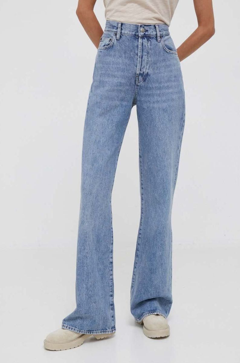 - Фасон wide leg - джинси, дещо приталені на стегнах, з характерною широкою штаниною, яка поступово розширюється від талії до низу. Такий крій підкреслює лінію талії, а вільний низ дає змогу легко рухатися.