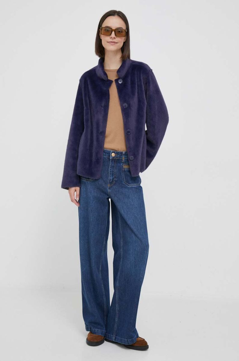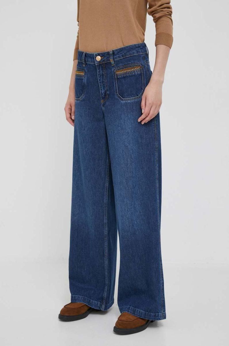 Джинси з домішкою льону Mos Mosh висока посадка колір блакитний