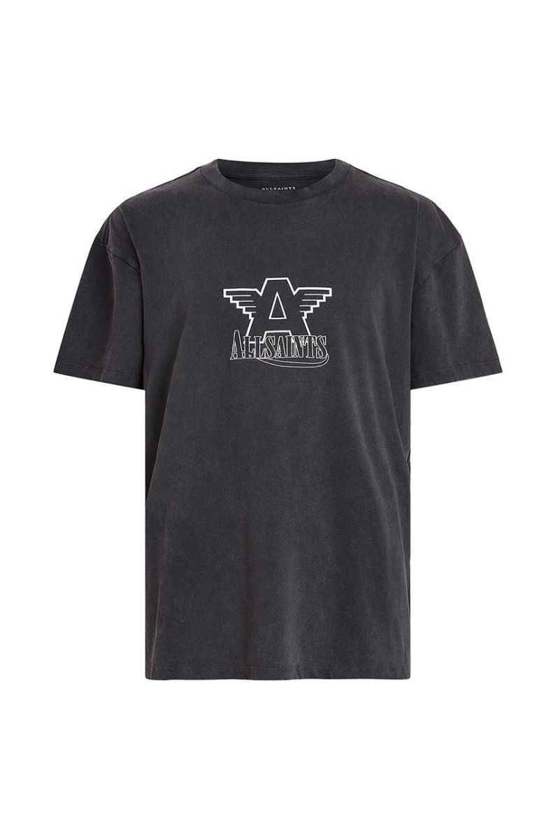 Футболка AllSaints MG018Z MATCH SS CREW чоловіча колір чорний з принтом