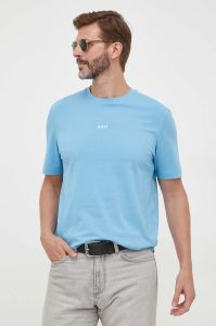 Футболка BOSS BOSS ORANGE чоловіча однотонна колір блакитний