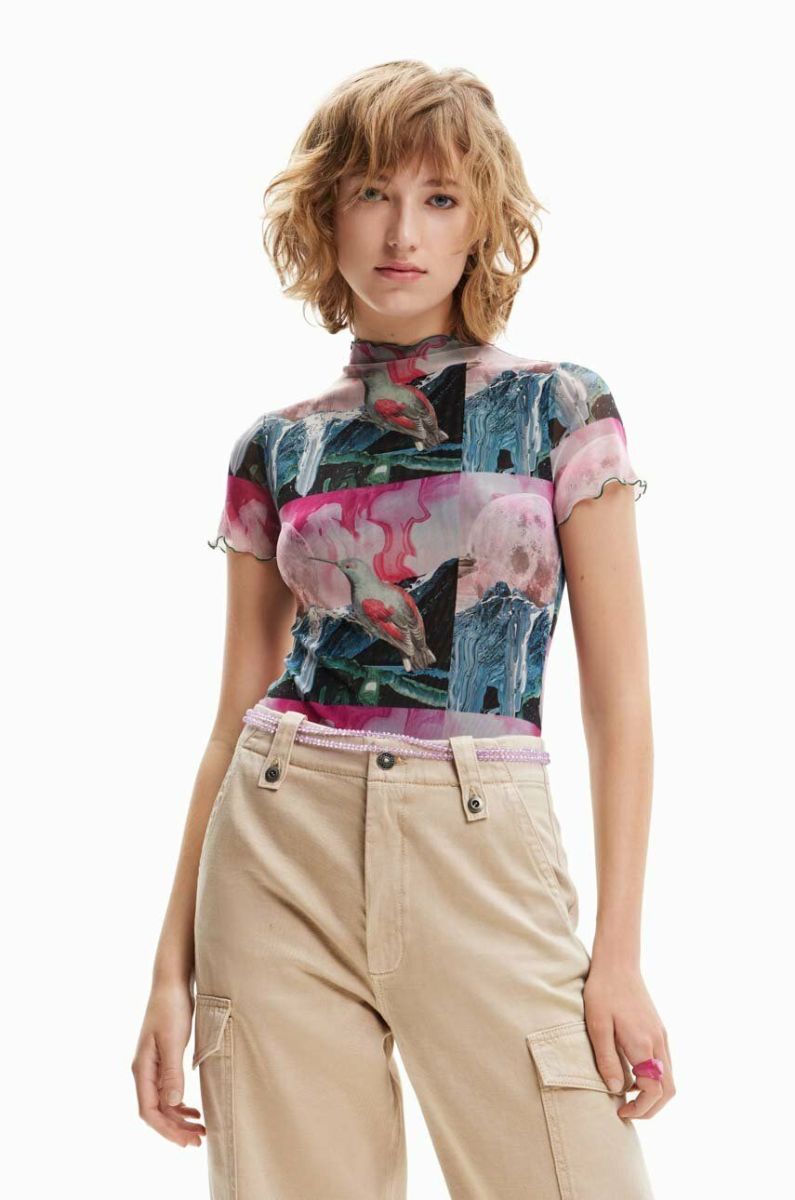 Футболка Desigual жіночий півгольф колір барвистий (3037065)