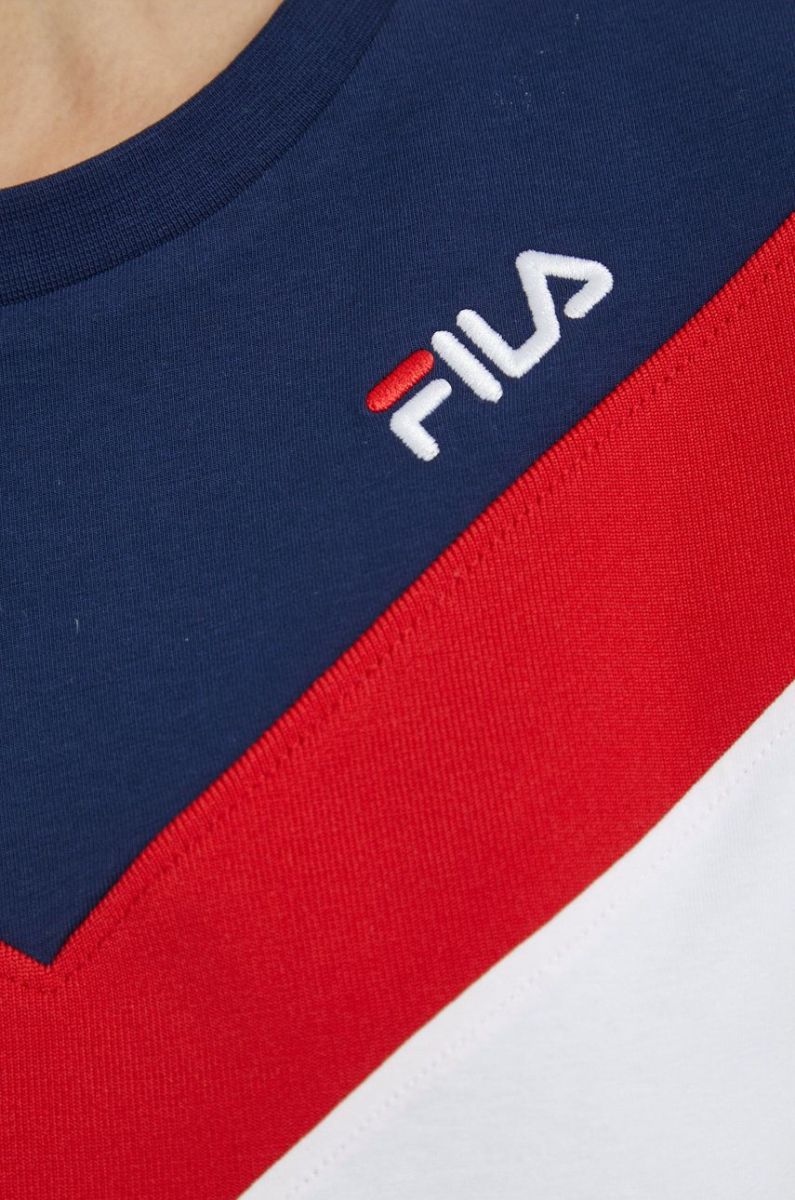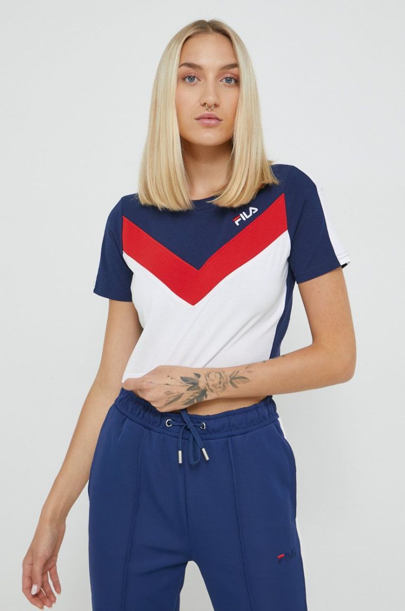 Приталена футболка із колекції Fila. Модель виготовлена із тонкого еластичного трикотажу.