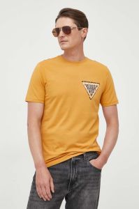 Футболка Guess чоловічий колір помаранчевий з аплікацією