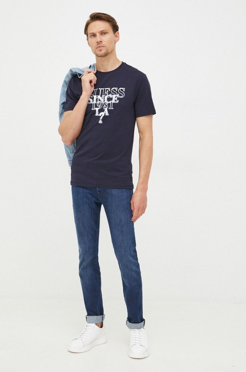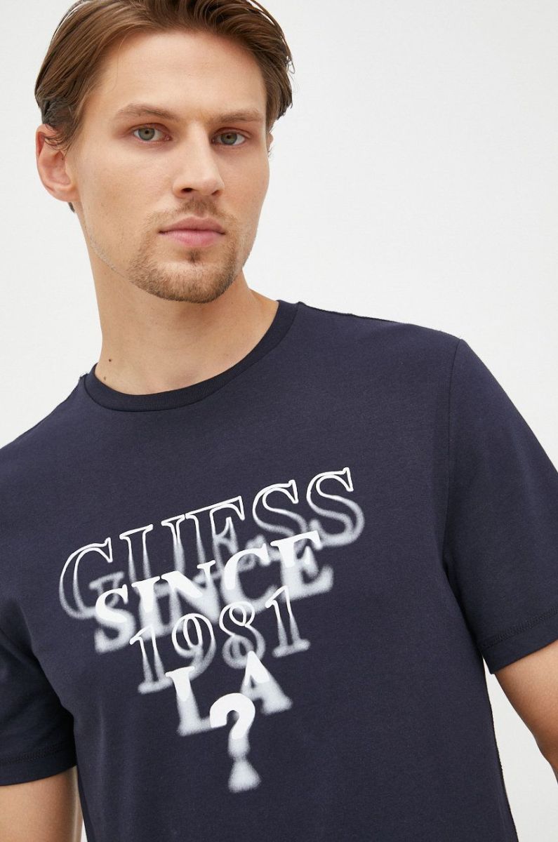 Футболка Guess чоловічий колір синій з принтом (2440425)