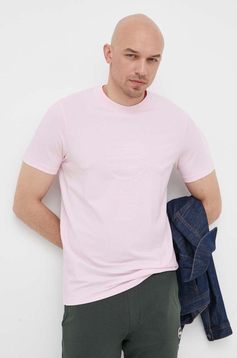 Футболка Karl Lagerfeld чоловічий колір рожевий з принтом