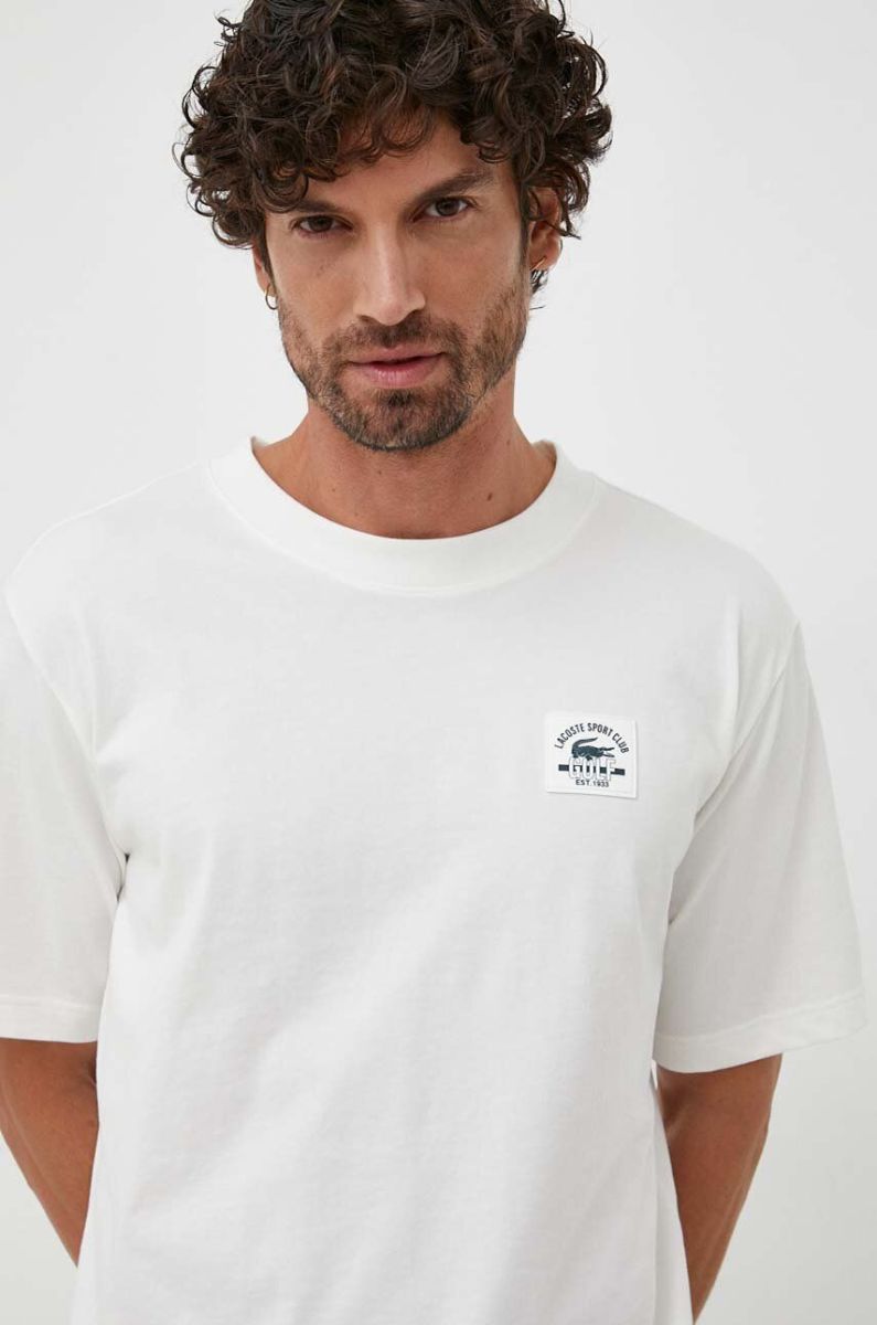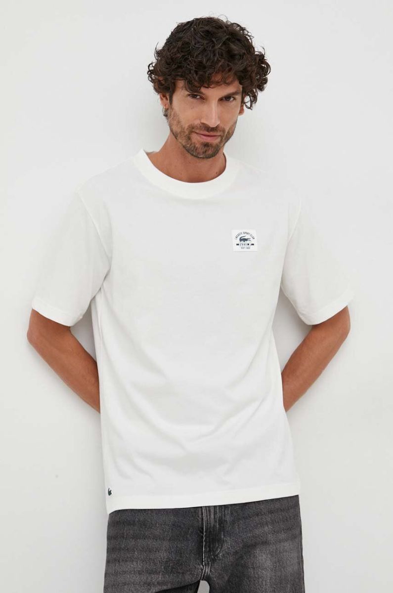 Футболка Lacoste чоловічий колір бежевий з принтом
