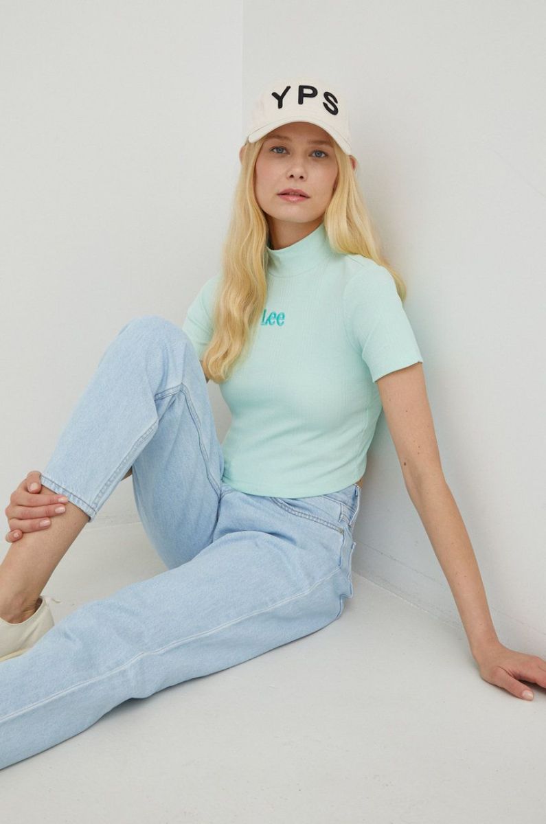 Футболка Lee жіночий колір зелений півгольф