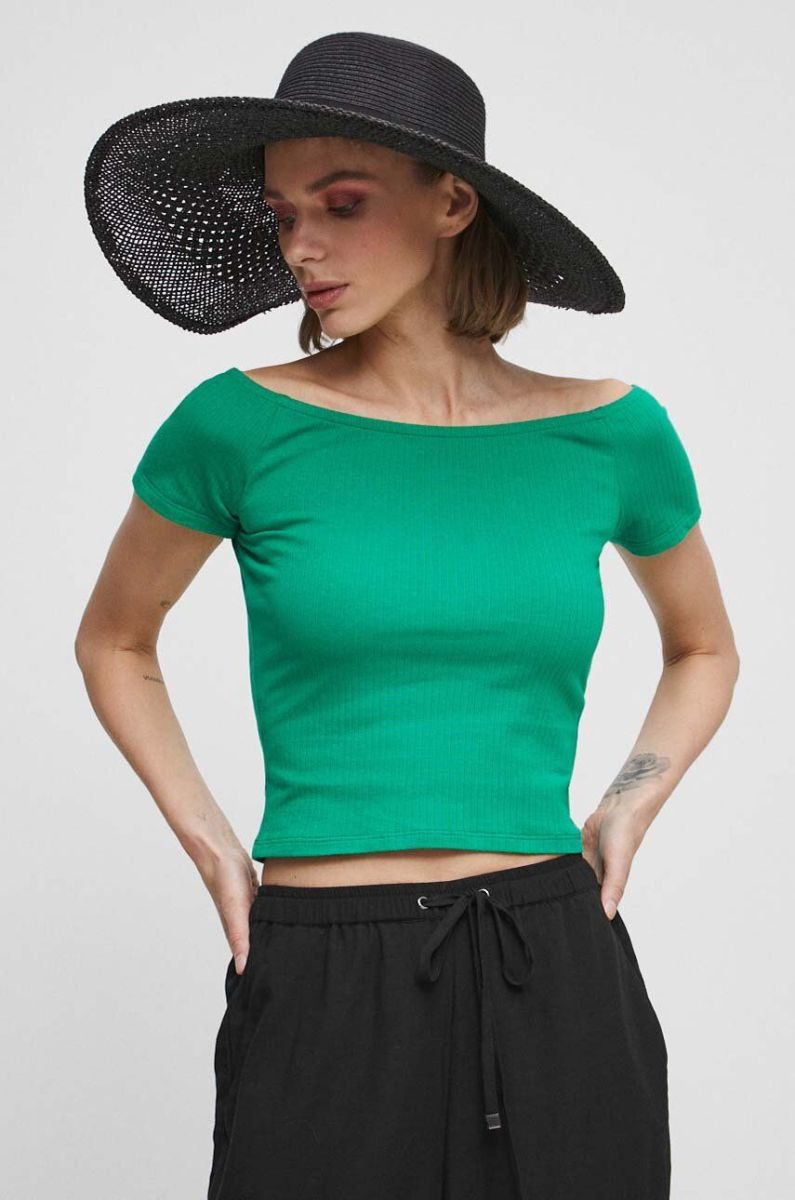 Футболка Medicine жіноча колір зелений оголене плече (3341176)