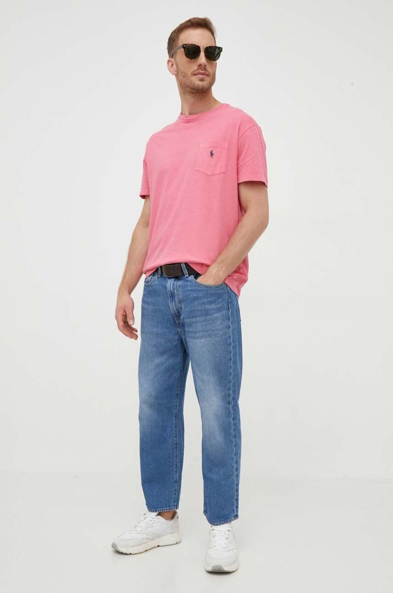 Футболка з домішкою льону Polo Ralph Lauren колір червоний однотонний