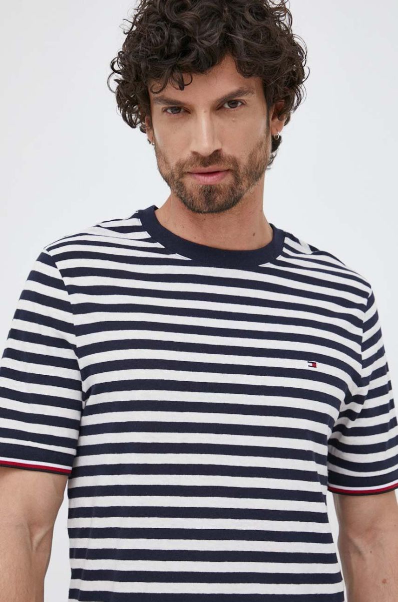 Футболка з домішкою льону Tommy Hilfiger колір синій візерунок