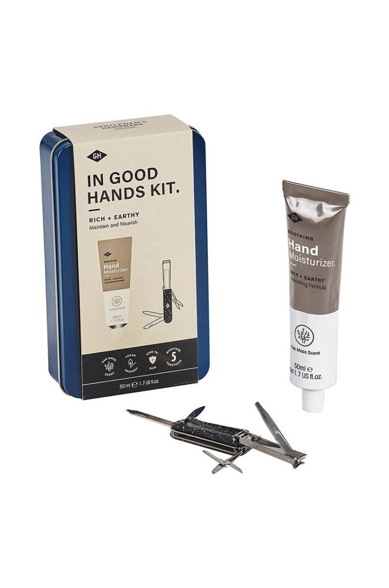 - Містить веганський зволожуючий крем (150 мл) з ароматом дубового моху та мультиінструмент для манікюру.