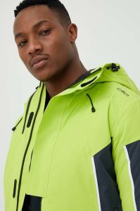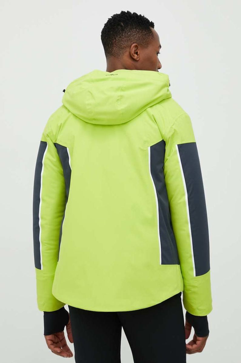 - Високий комір, що закриває підборіддя, та капюшон, який регулюється зав’язками, забезпечують захист від холоду, вітру, снігу та дощу.